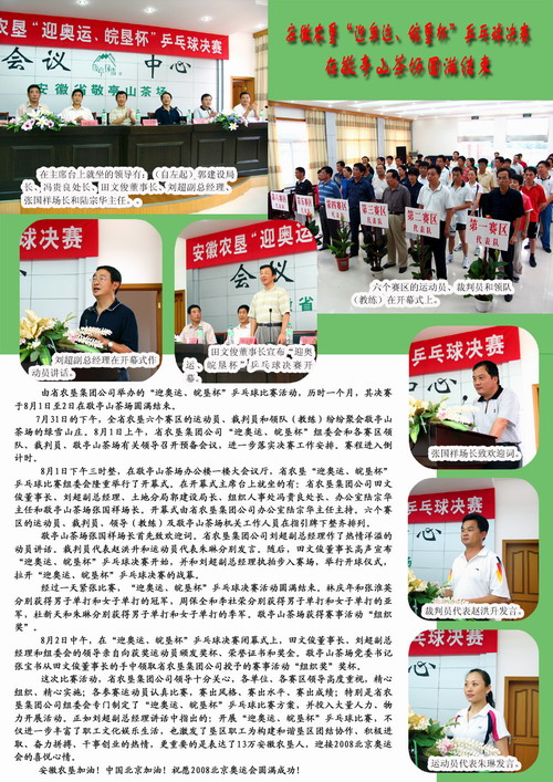 安徽农垦“迎奥运、皖垦杯”乒乓球比赛圆满结束