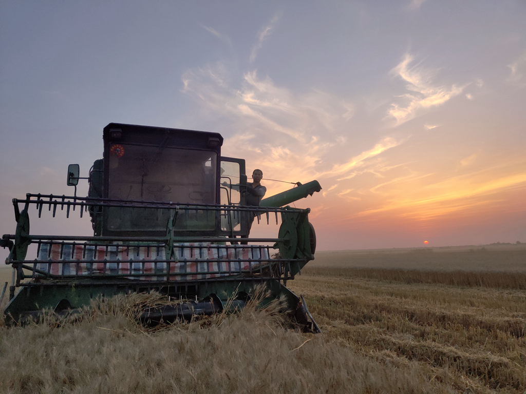 午收的主打色是金色,成群结队的大型收割机从清晨工作到夕阳西下,收割的小麦直接运往农场各个农服收购站。运粮车从上称、检测、卸粮到出站不过十多分钟的时间,迅速快捷而有序。(华阳河农场公司 包丹凤)