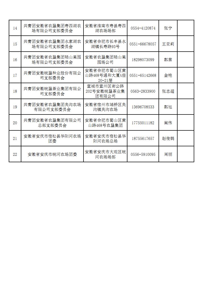 农垦集团团委-团组织相关信息