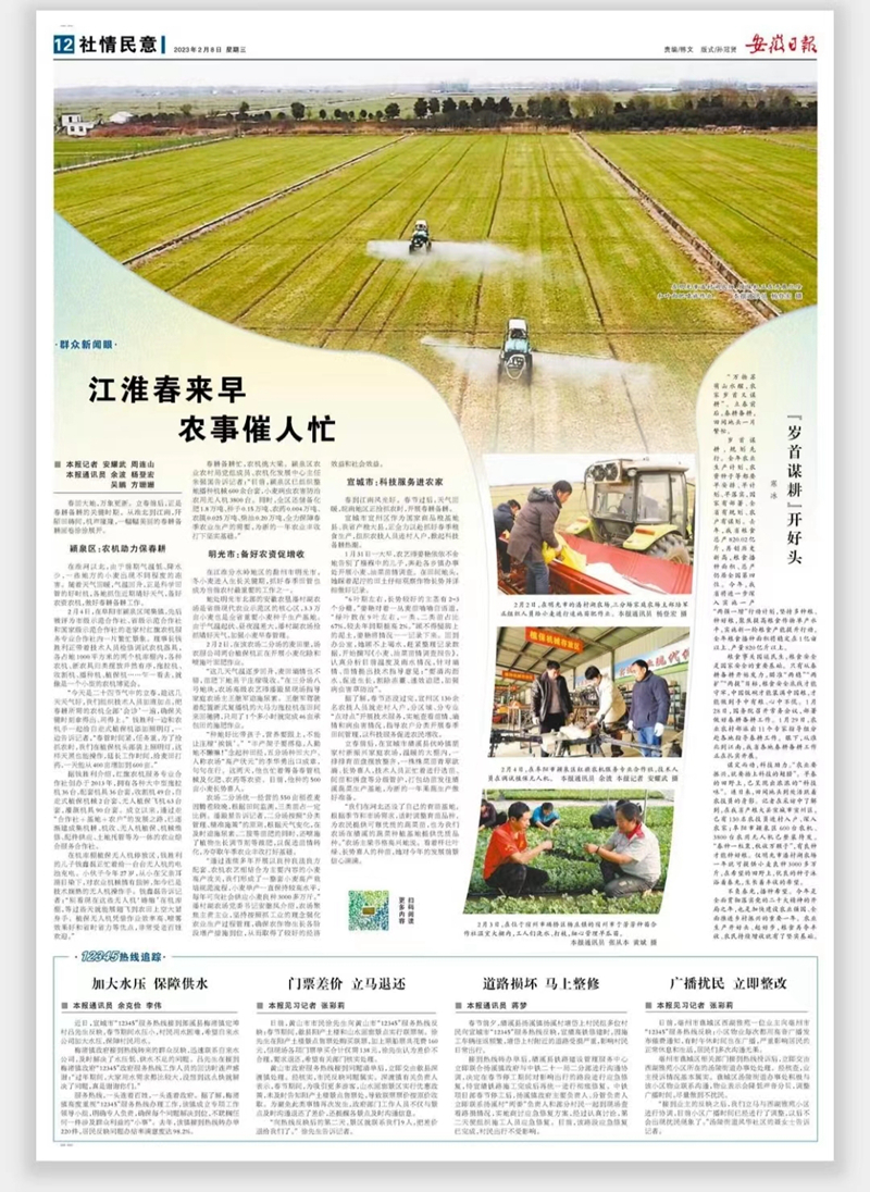 《安徽日报》刊发潘村湖农场公司春管图文稿件
