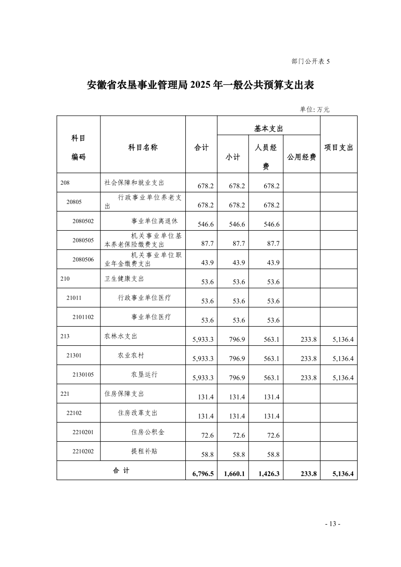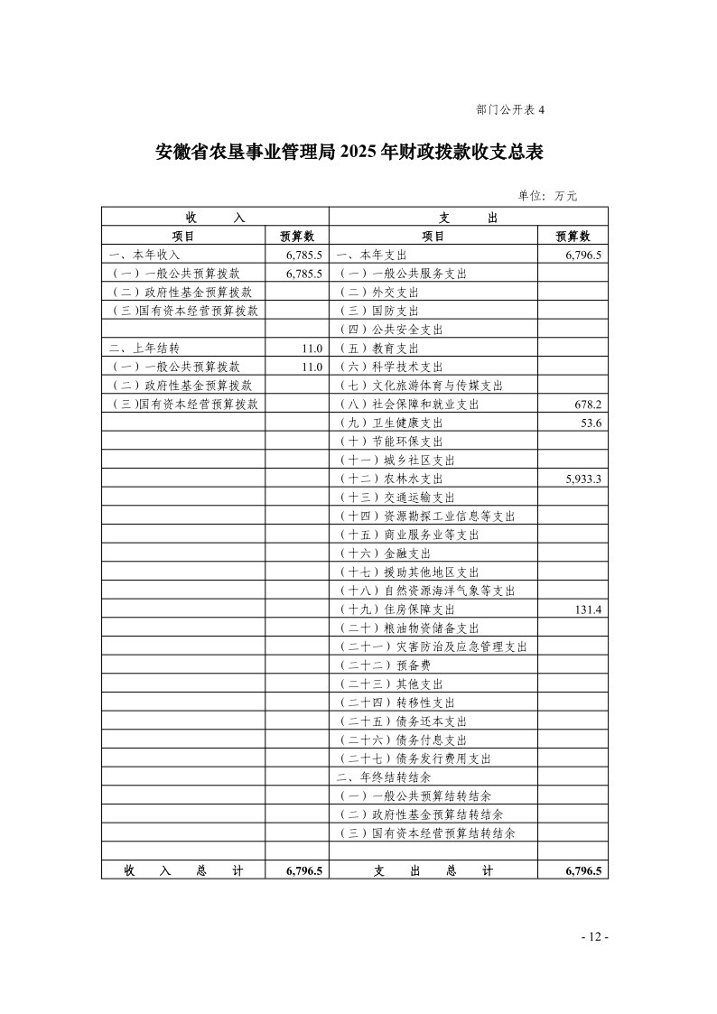 安徽农垦集团:安徽省农垦事业管理局2025年部门预算.pdf