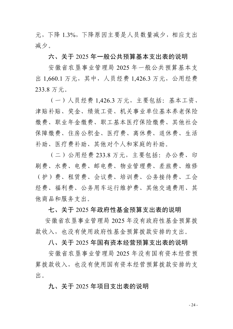 安徽省农垦事业管理局2025年部门预算