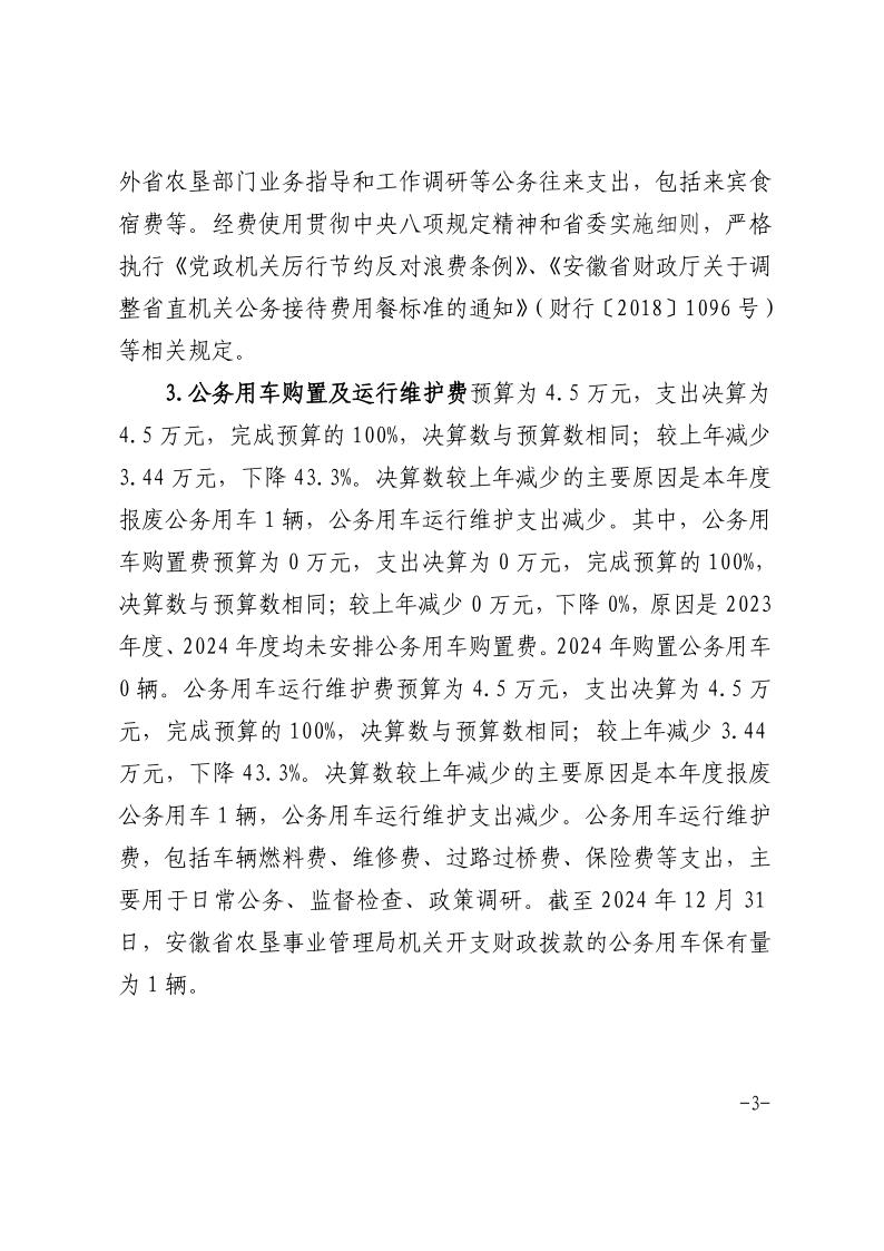 安徽省农垦事业管理局2024年度一般公共预算财政拨款“三公”经费支出决算