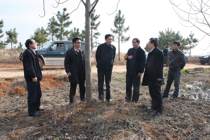 3月17日,芜湖市委副秘书长刘见君一行在省农垦集团办公室负责人孙良仓等陪同下,来到九连山茶场调研考察绿化大苗合作事宜,实地参观了茶场丰产林基地一、二、三期工程。