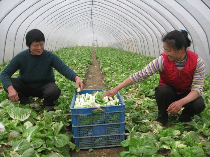 2月24日下午,在省农垦皖河农场蔬菜专业户叶龙传的大棚里,两名摘菜工正在采摘白菜苔。受年前一场大雪和冻雨影响,早发的露天菜苔普遍减产,开春后菜苔价格飙升,正月初五安庆市场每市斤菜苔批发价高达3.8元,近期也维持在2.5 元左右的价位,而往年同期价格仅在1元左右。叶龙传说:“都说春菜如草,可今年菜苔是金,我的大棚菜苔总产1500公斤,毛收入4000多块!”
