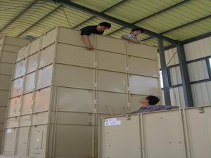 由农业部批复,总投资达700万元(其中中央财政 580万元,企业配套120万元)的国家级优质专用小 麦繁育基地项目去年底落户潘村湖农场。该项目建 成后,农场可新增制种能力920万公斤,从而进一步 巩固其在全省常规种子生产和加工企业行列排头兵 的地位。图为工程技术人员正在安装新型远红外种 子烘干线的情景。(杨登宏摄)